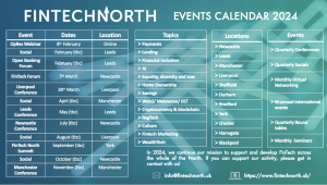 With our provisional 2024 events calendar completed, we are well on our way to delivering a record number of events across the North in more locations than ever. For further information, please contact us via email at info@fintechnorth.uk.