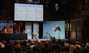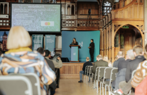 Following a mid-morning networking session, delegates returned to the Whitworth Hall for a series of keynotes and fireside chats from the conference’s sponsors.