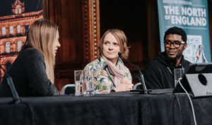 Next was a fireside chat between Silas Ozoya, Talent Upskill Associate at FinTech North, Rachel Kenyon, Business Engagement Manager at the University of Manchester, and Ellie Kirkman, FinTech PR Consultant at Started PR, who facilitated the discussion.